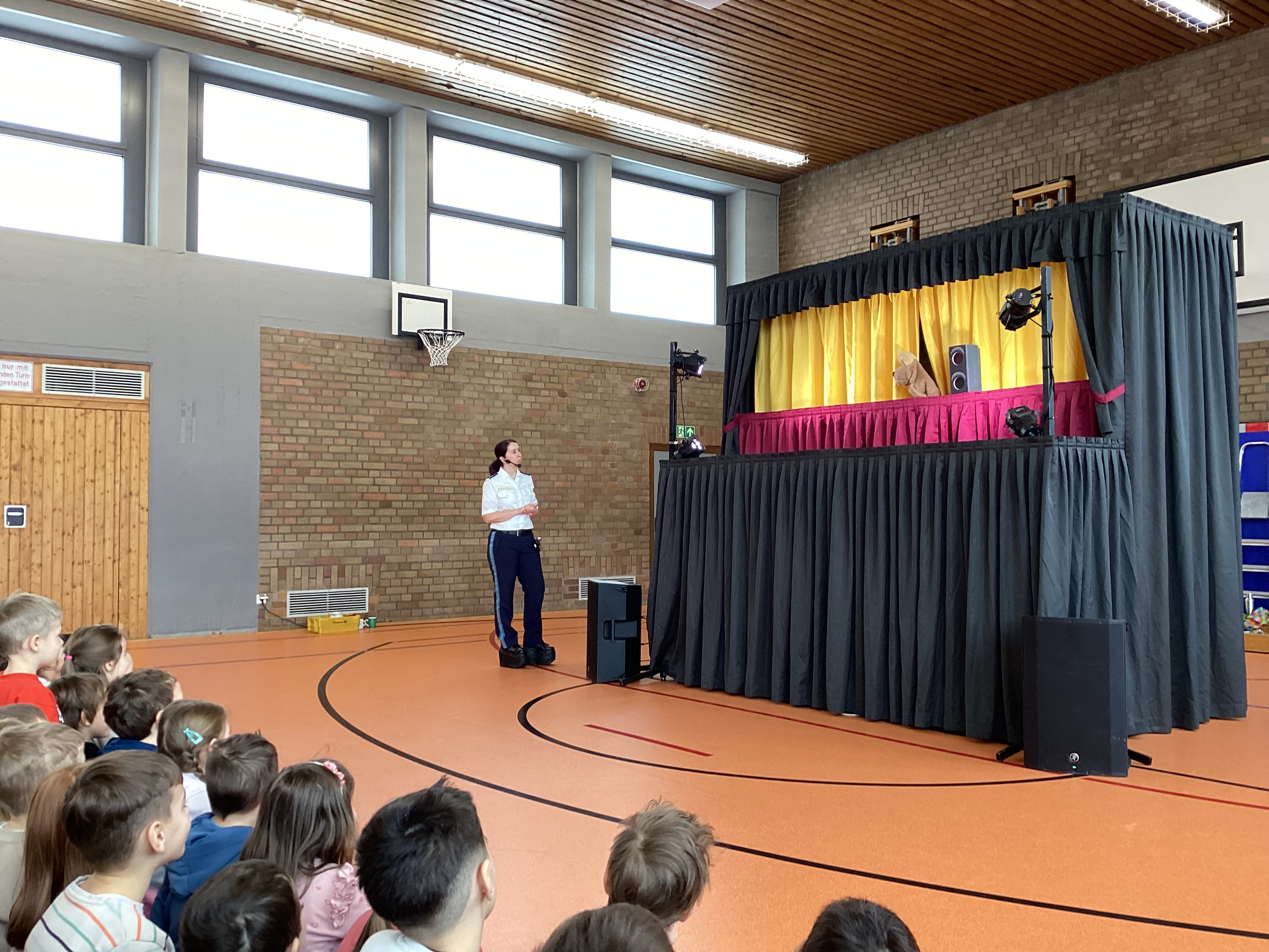 Am Mittwoch, den 28. Januar 2026, durften die Vorschulkinder des kath. Kindergartens Sankt Theresia um 9:30 Uhr in der Turnhalle der Schule ein ganz besonderes Theater erleben. Die Polizeipuppenbühne aus Weiden spielte das lustige und spannende Stück „Der verzauberte Kasper“.