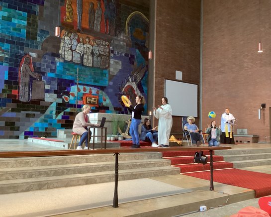 Das Team zeigte in einem pantomimischen Spiel, wie hektische Jünger Jesus umringen.
