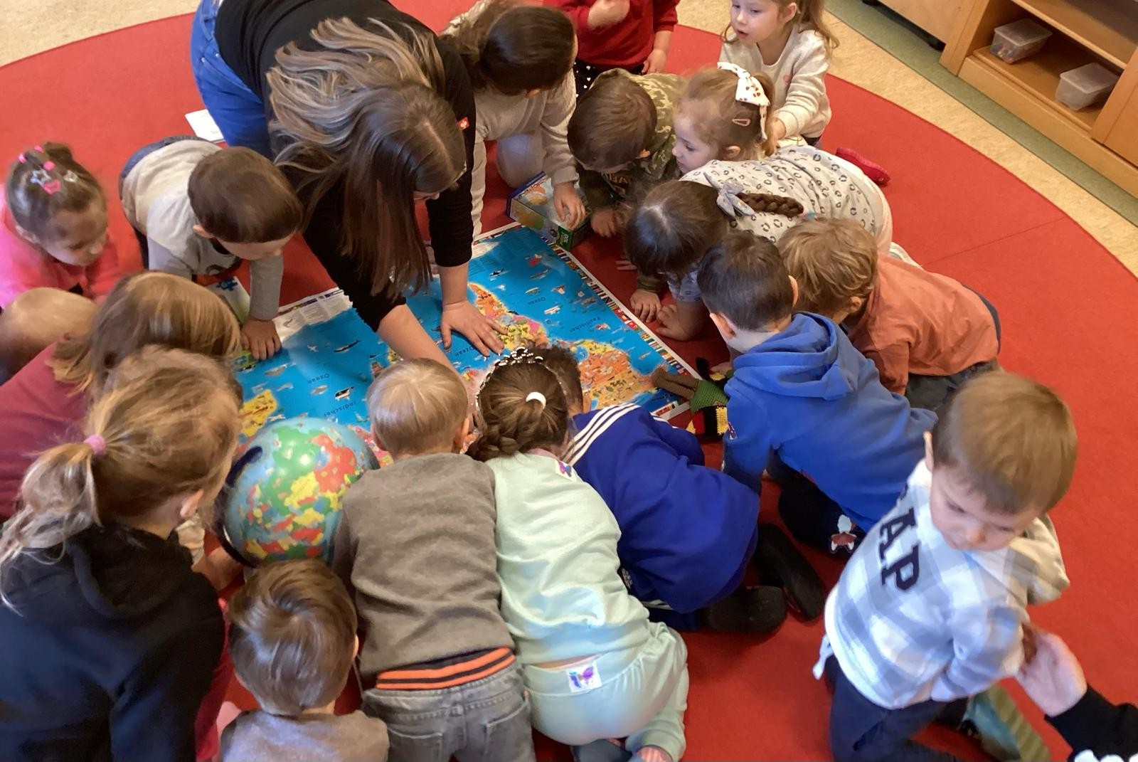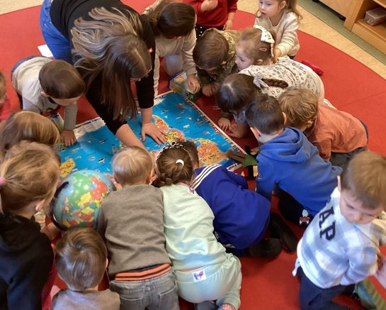 In der Praxis wurden mehrere Projekte zu verschiedenen Herkunftsländern durchgeführt – angelehnt an unser Jahresthema „Das kleine WIR“. Gemeinsam mit den Kindern sind wir „durch die Welt gereist“ und haben unterschiedliche Kulturen entdeckt – nicht nur die der Herkunftsländer unserer Kinder, sondern auch unsere eigene, die deutsche Kultur. Die Kinder durften Gegenstände, Bücher, Musik oder landestypische Dinge von Zuhause mitbringen. So konnten alle Kinder ihre Wurzeln zeigen. Dabei wurden Länder auf der Weltkarte entdeckt, Flaggen gemalt, Begrüßungen in verschiedenen Sprachen gelernt und Speisen aus aller Welt probiert. Die Eltern unterstützten uns tatkräftig – so entstand ein lebendiger und authentischer Austausch, der bei den Kindern viel Interesse und Neugier weckte.