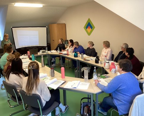 Das gesamte Kindergarten- und Krippenteam traf sich zur Teamfortbildung zum Thema „Sprache von Anfang an“ mit Referentin Marina Neumüller.