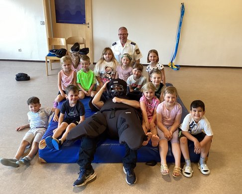 Präventionsschulung für die Sicherheit unserer zukünftigen Schulkinder mit Polizeioberkommissar Hr. Tschauner und Polizeihauptkommissar Hr. Behrend