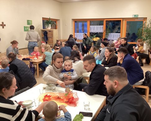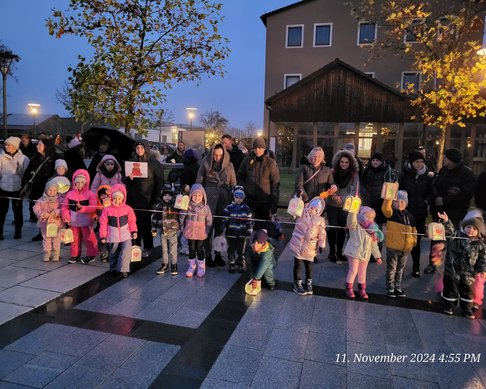 Mit unseren selbstgebastelten Laternen ziehen wir vom Kirchplatz zum Kindergarten und erinnern uns an die guten Taten des heiligen St. Martin